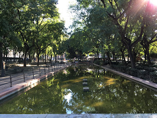 Anytime we like, we stroll over to the Plaza through an expansive park. True, this particular park is one where many were put to death during the Spanish Inquisition, but today, fountains and greenery mask the past.