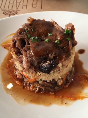 tapas, those 'little plates' with a variety of 'little bites.' We've already tried four meatballs in a tasty sauce and fried squid, crisp and delicately flavored. Two such